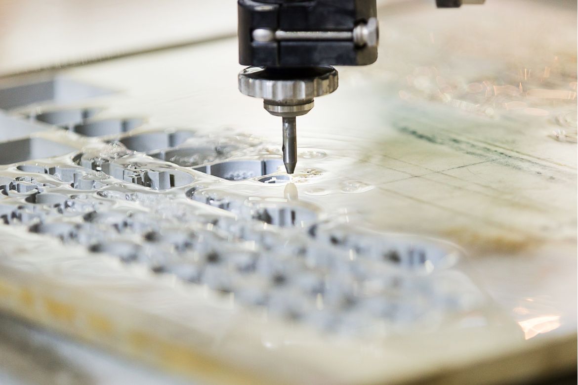 La découpe jet d’eau est un véritable avantage pour notre métier : elle permet la découpe rapide de toutes matières sur 2 axes asservis sans altération thermique et ce jusqu'à une épaisseur de 100 mm